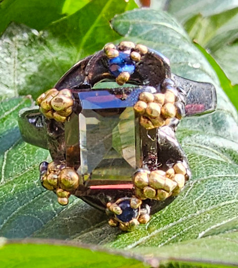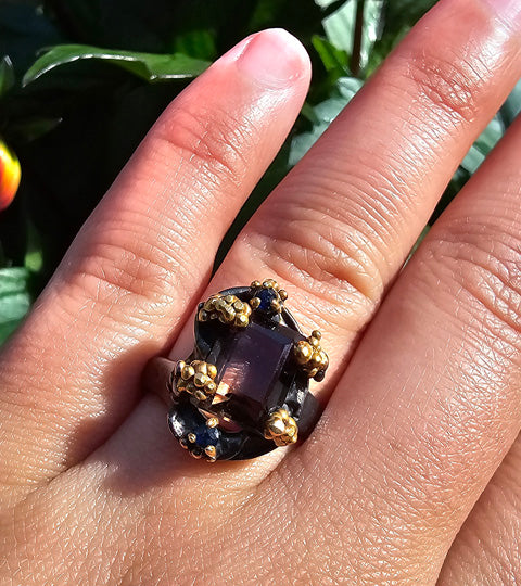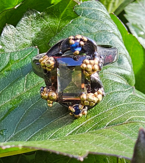 This Ocean Series ring in our Rulebreaker Collection is a prime example of understated elegance. The cushion-cut smokey quartz is 'caught' in a tangle of coral. Two deep-blue sapphires provide the barest glint of colour one might see in the ocean's depths.